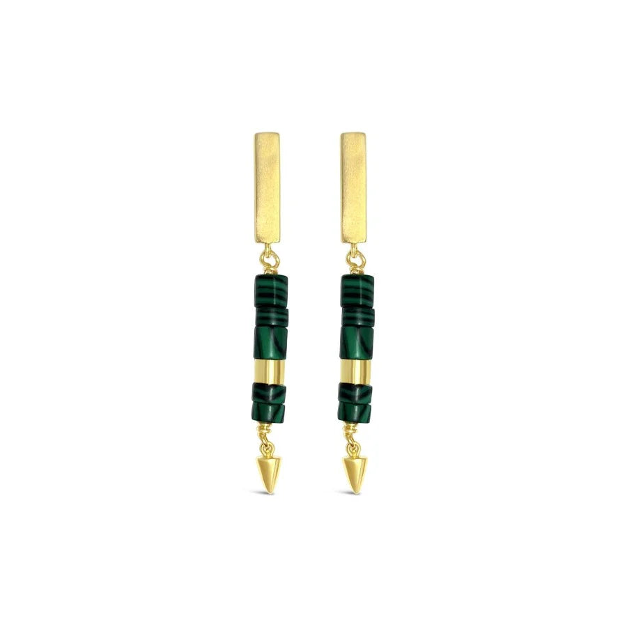 Sisters to the Boa Necklace, these beaded malachite drop earrings are the perfect dose of daily greens.