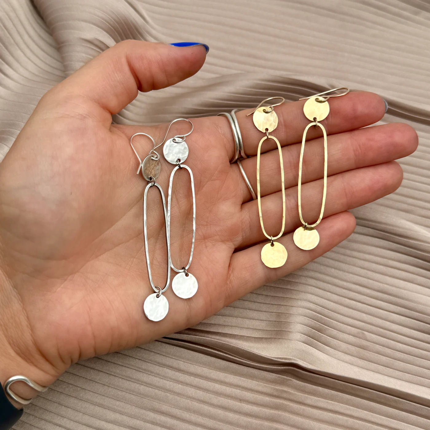 Ear wires and necklace chains are hypoallergenic and are sterling silver or 14 karat gold filled. Gold and silver pendant pieces are made of raw brass or sterling silver plated brass and can be polished the same as all other precious metals.