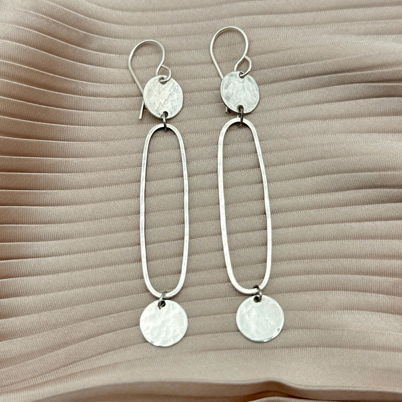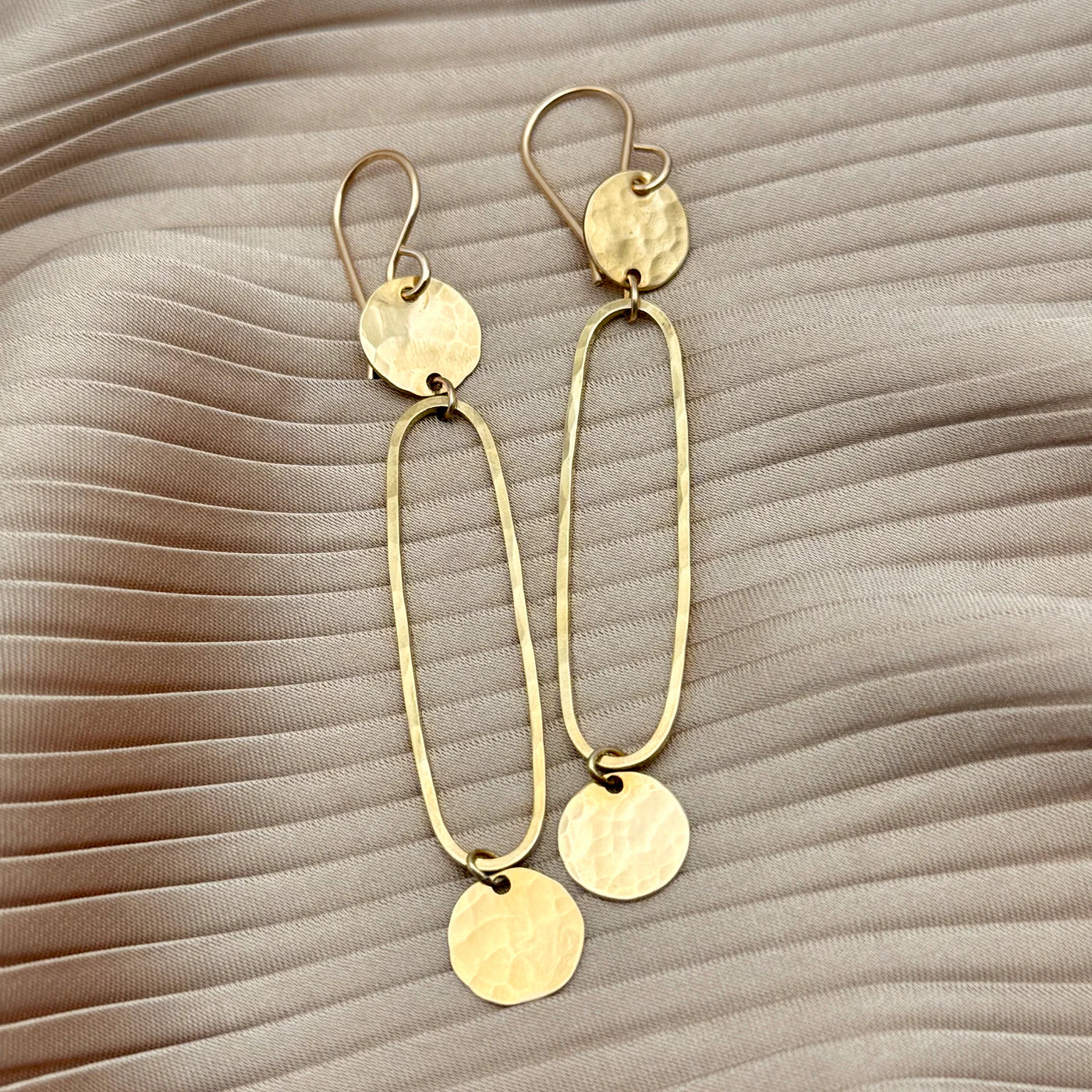 Gold or silver textured pendants hang from 14 karat gold filled or sterling silver ear wire.
