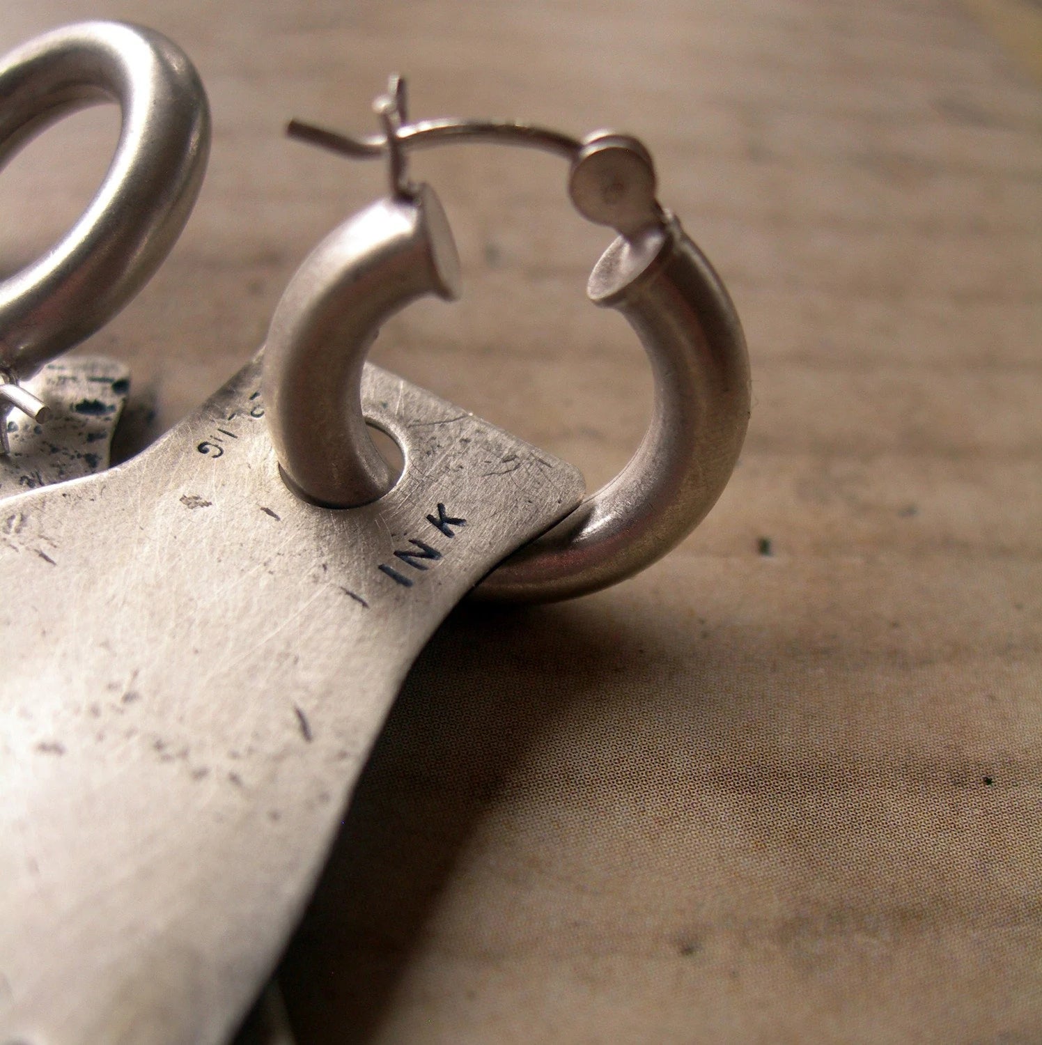 Inspired by the self-portrait by Mexican artist Frida Kahlo we hand-cut solid sterling silver hands. Hung from a beefy pair of sterling hoops which may be worn separately.