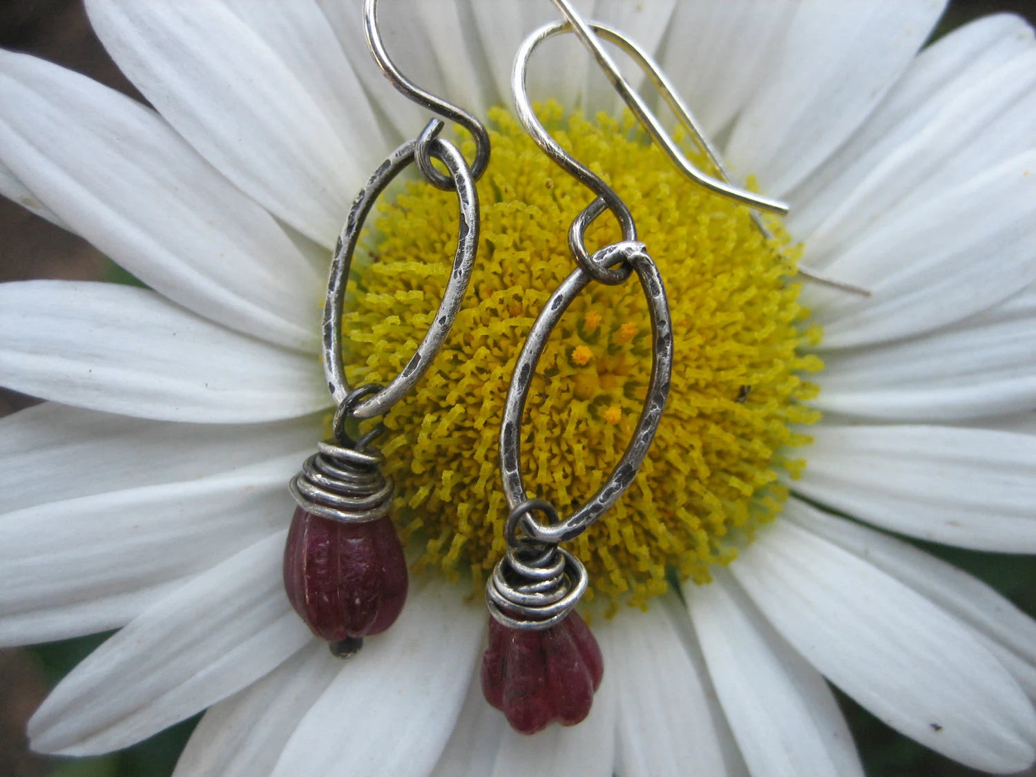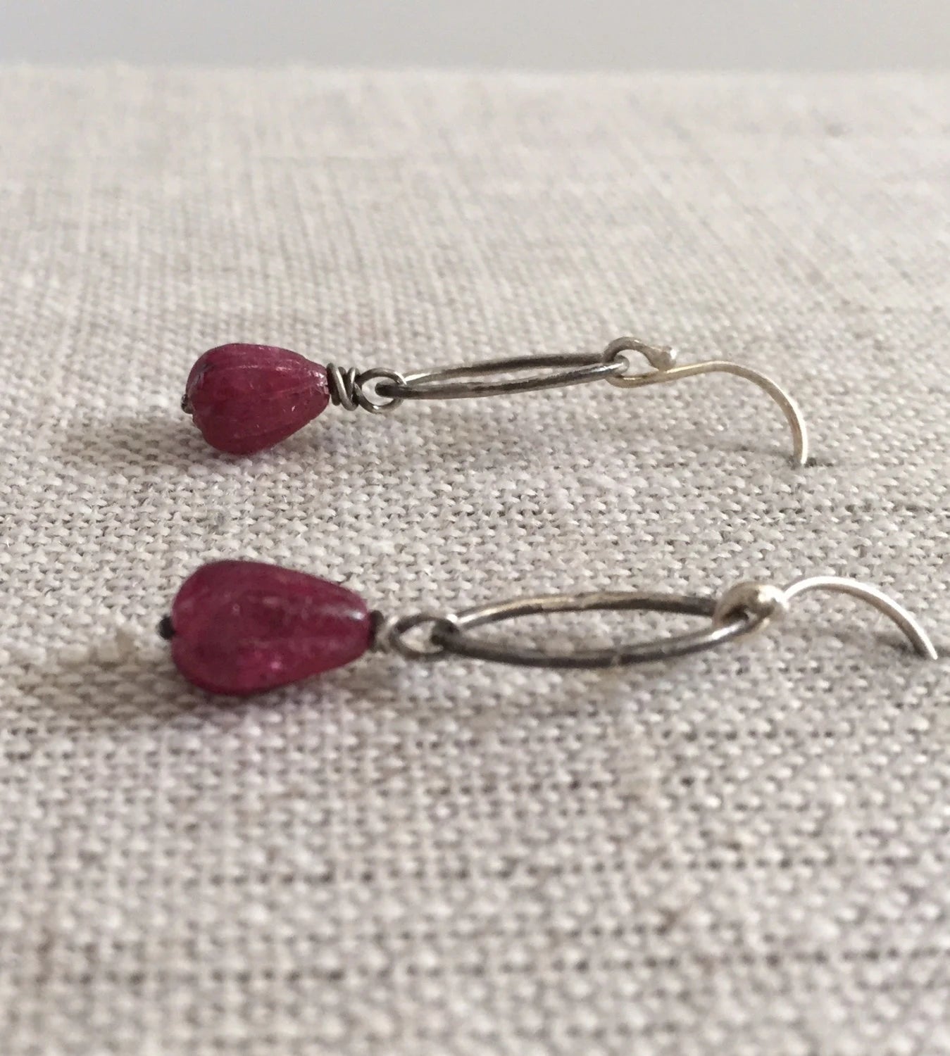 Rubies Are My Tears Solid Sterling Silver & Carved Ruby Earrings/Local