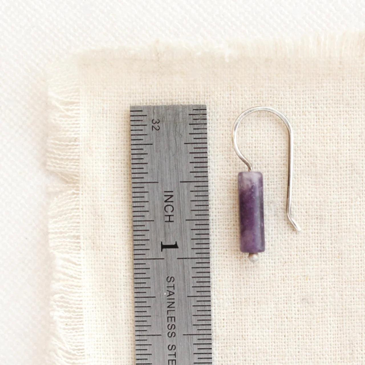 Rustic charm with a touch of easy femininity. Edgy lepidolite tubes rest on hand forged silver earwires. Dainty yet substantial. Handmade Shepherd hook earwires. Measure 1”. Sterling silver, which has been oxidized and hand polished for an antique finish.
