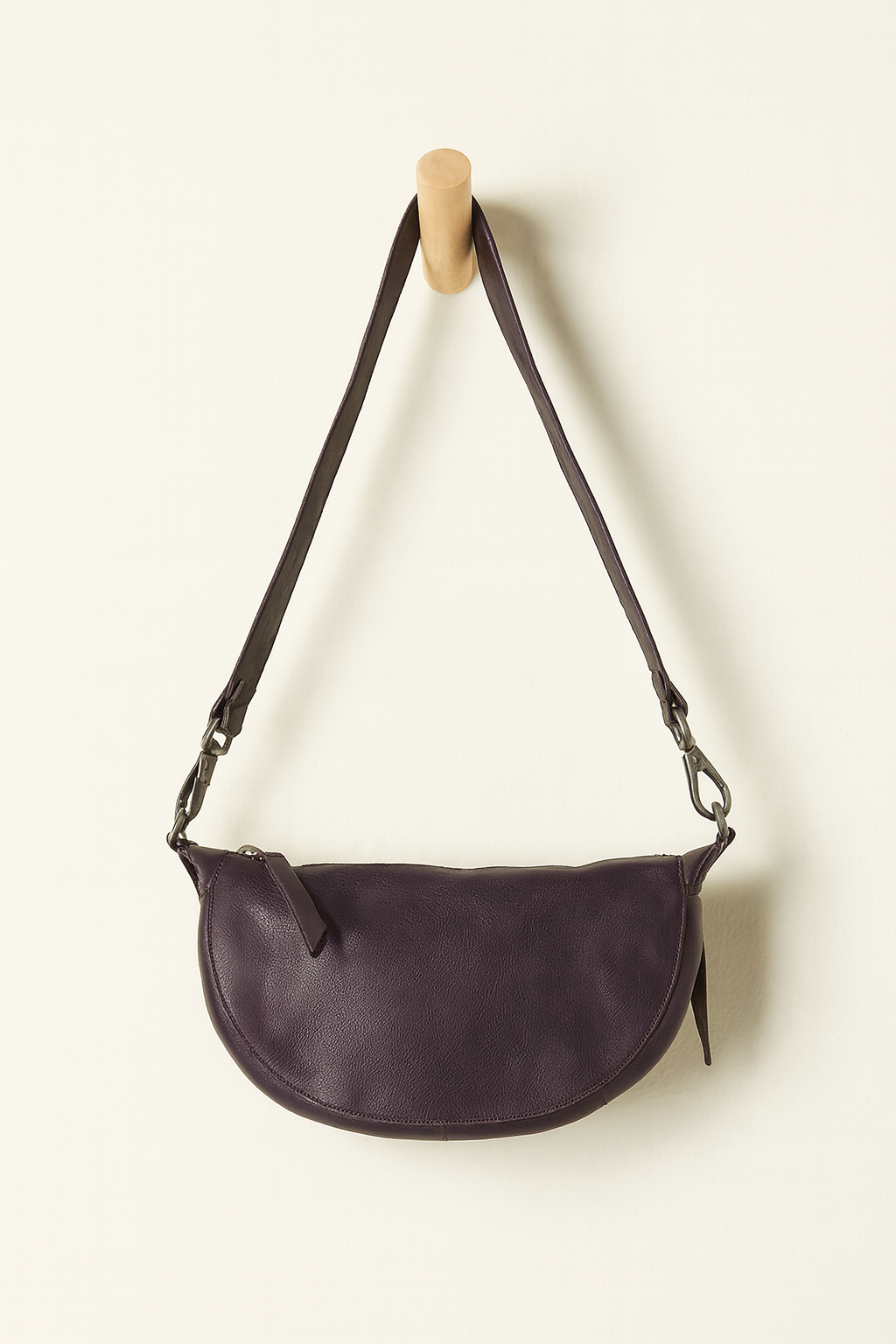 The crossbody strap is 3/4” wide and adjustable, offering a 22” max and 11” min drop. It features a secure top zip entry with leather pull, along with 2 convenient side zip pockets for easy access.