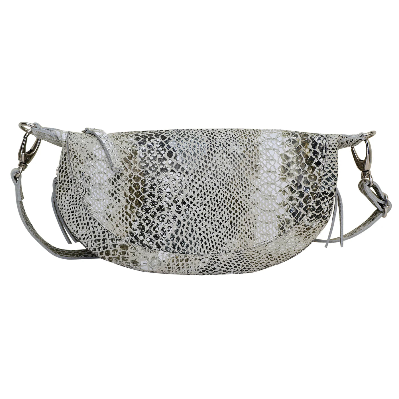 The crossbody strap is 3/4” wide and adjustable, offering a 22” max and 11” min drop. It features a secure top zip entry with leather pull, along with 2 convenient side zip pockets for easy access.