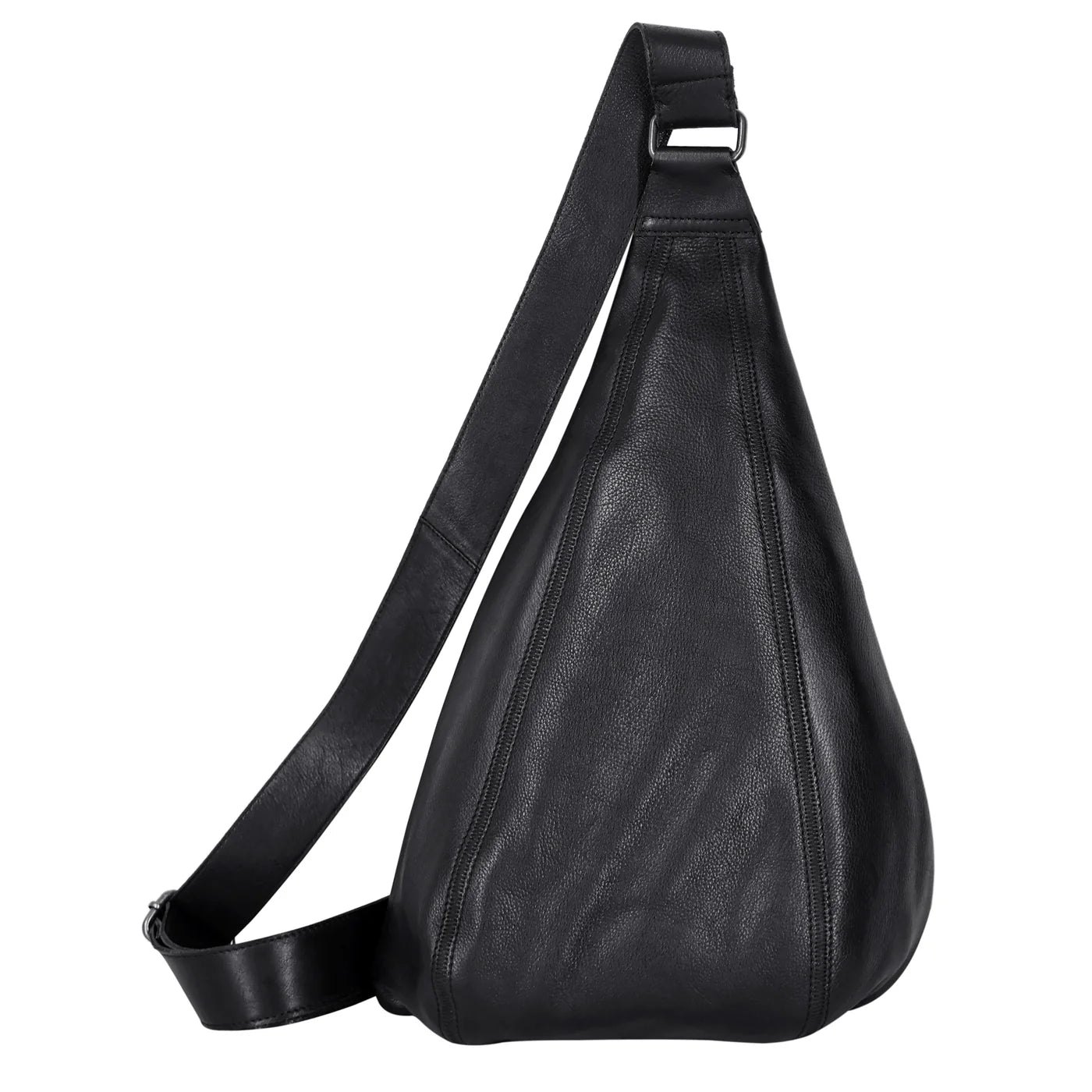 Relaxed 1½”wide, 47" long single strap adjustable sling/backpack with top zip entry and exterior cell phone pocket