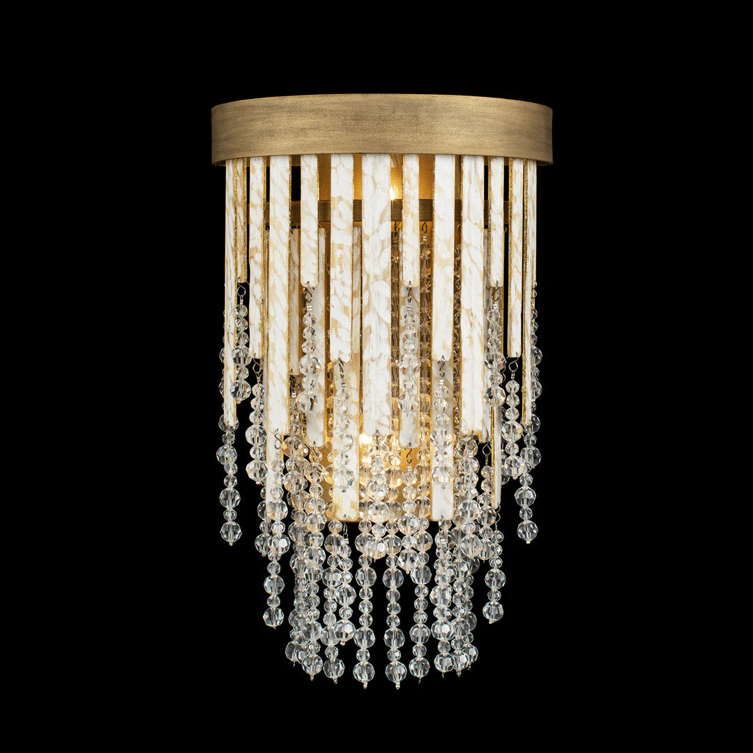 Ignite the swank and sultry soul of New Orleans. From feelings of a warm breeze blowing over a porch with gauzy drapes, to the decadence and passion of a smoky jazz club, Lafayette is sure to set the mood in any room. Echoing the look of live oaks with Spanish moss on dewy mornings, crystal beads sparkle around the hand-carved, white-and-gold washed reclaimed wood strips.