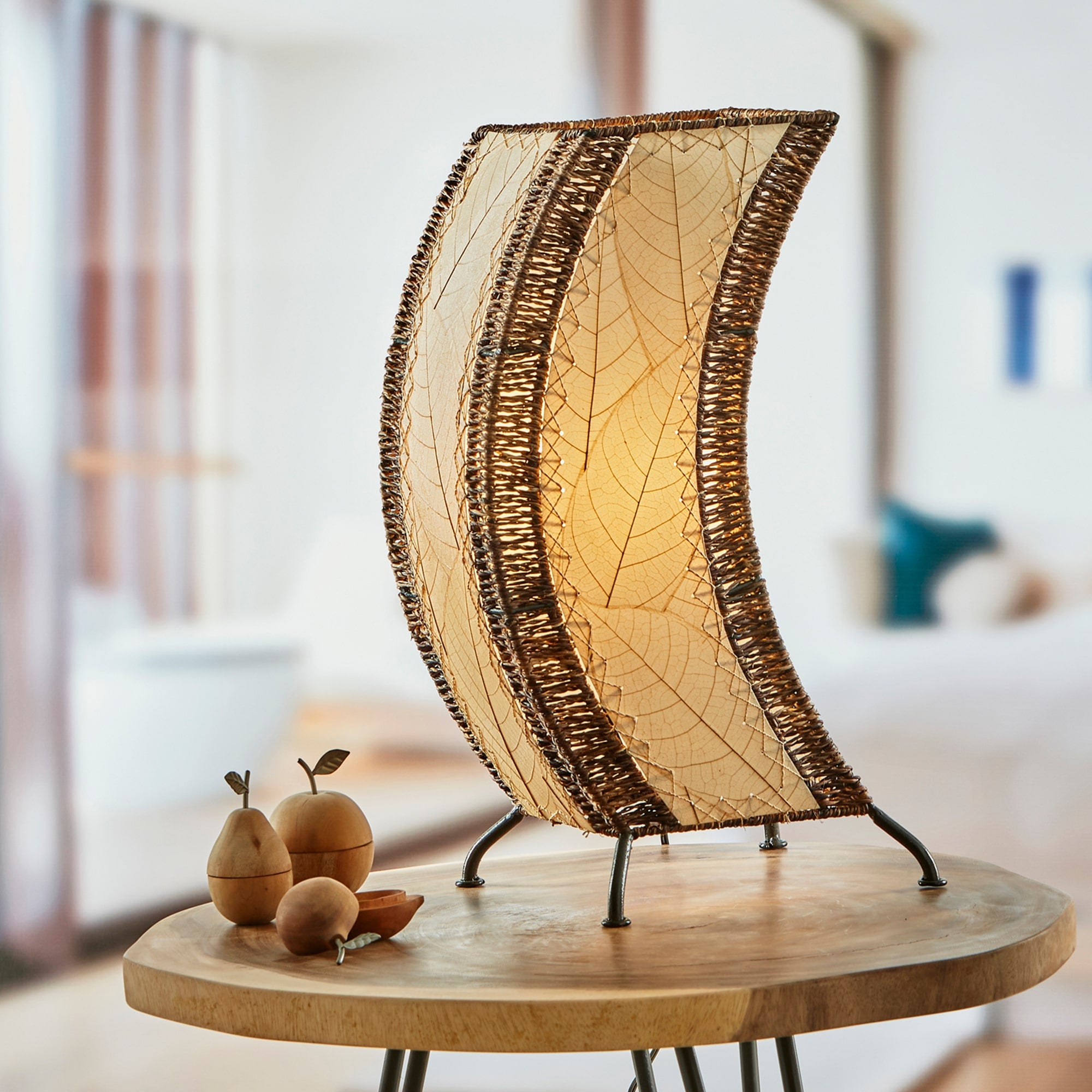 The C Shape Table Lamp invites a sense of movement and warmth into your space with its graceful, sculptural form. Like a gentle breeze caught mid-sway, the lamp’s curved silhouette adds softness and rhythm to any surface it graces. Real cocoa leaves are preserved and handcrafted into glowing panels, bordered by rich abaca rope that speaks to both strength and earthiness. The contrast of natural textures against the arc of the frame makes this piece feel alive—both timeless and playful.