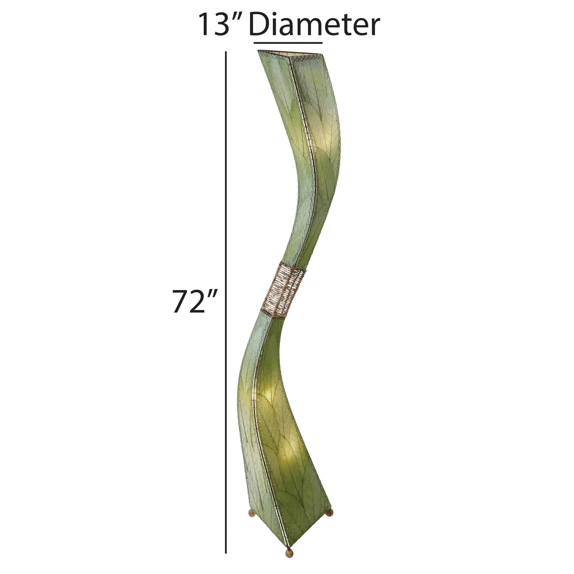 Crafted by hand, each side is composed of real cocoa leaves, pressed and preserved to reveal their delicate veins. As light passes through, the patterns shimmer softly, like sunlight on water. At the center, a band of woven abaca rope creates a sense of rhythm and grounding—a natural pause in the lamp’s upward sweep.