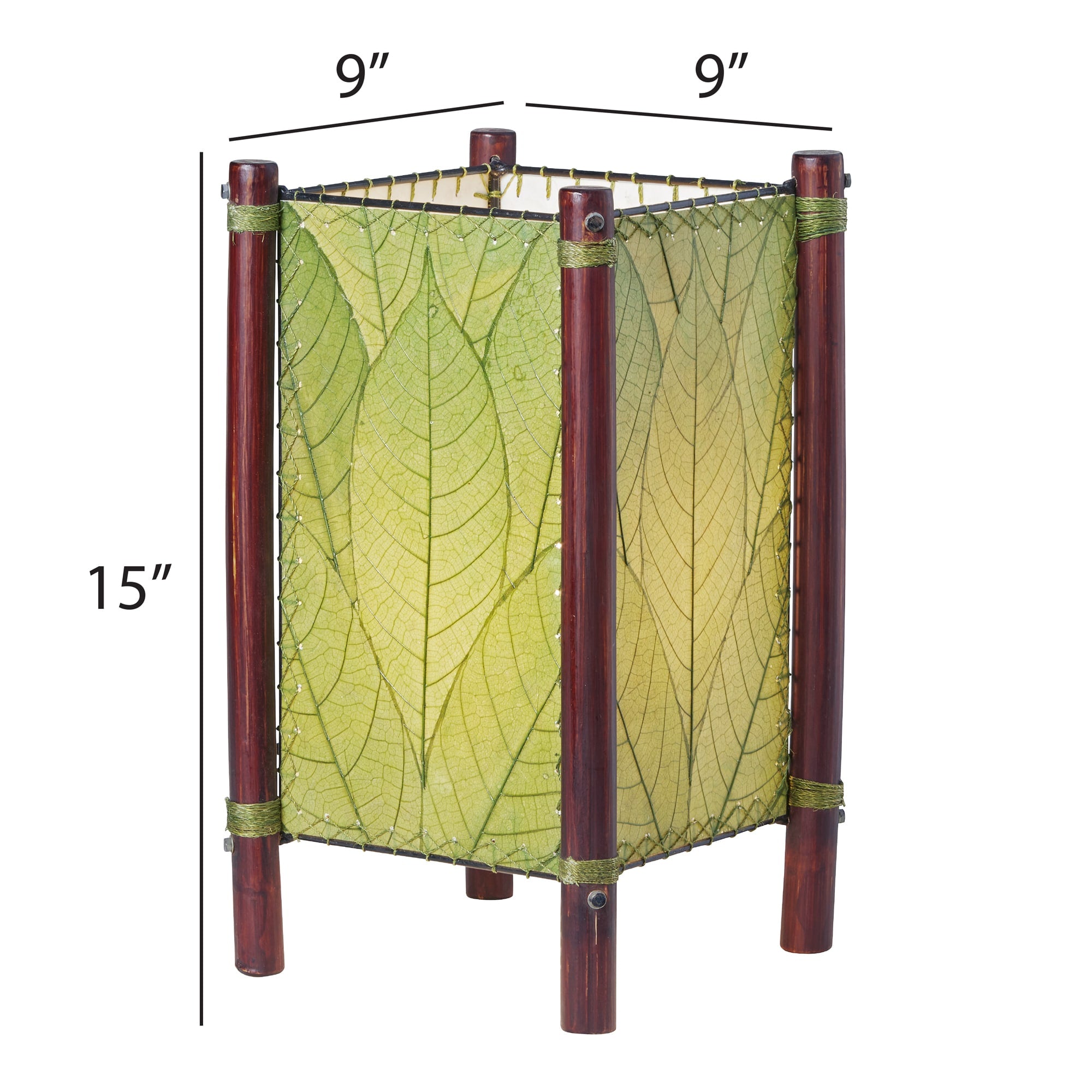 Each side is made from real cocoa leaves, pressed and preserved to showcase every delicate vein. When lit, the lamp gives off a soft, golden glow that seems to breathe. The frame is hand-stitched with abaca twine and anchored by four rattan poles—natural materials with their own stories, textures, and strength.