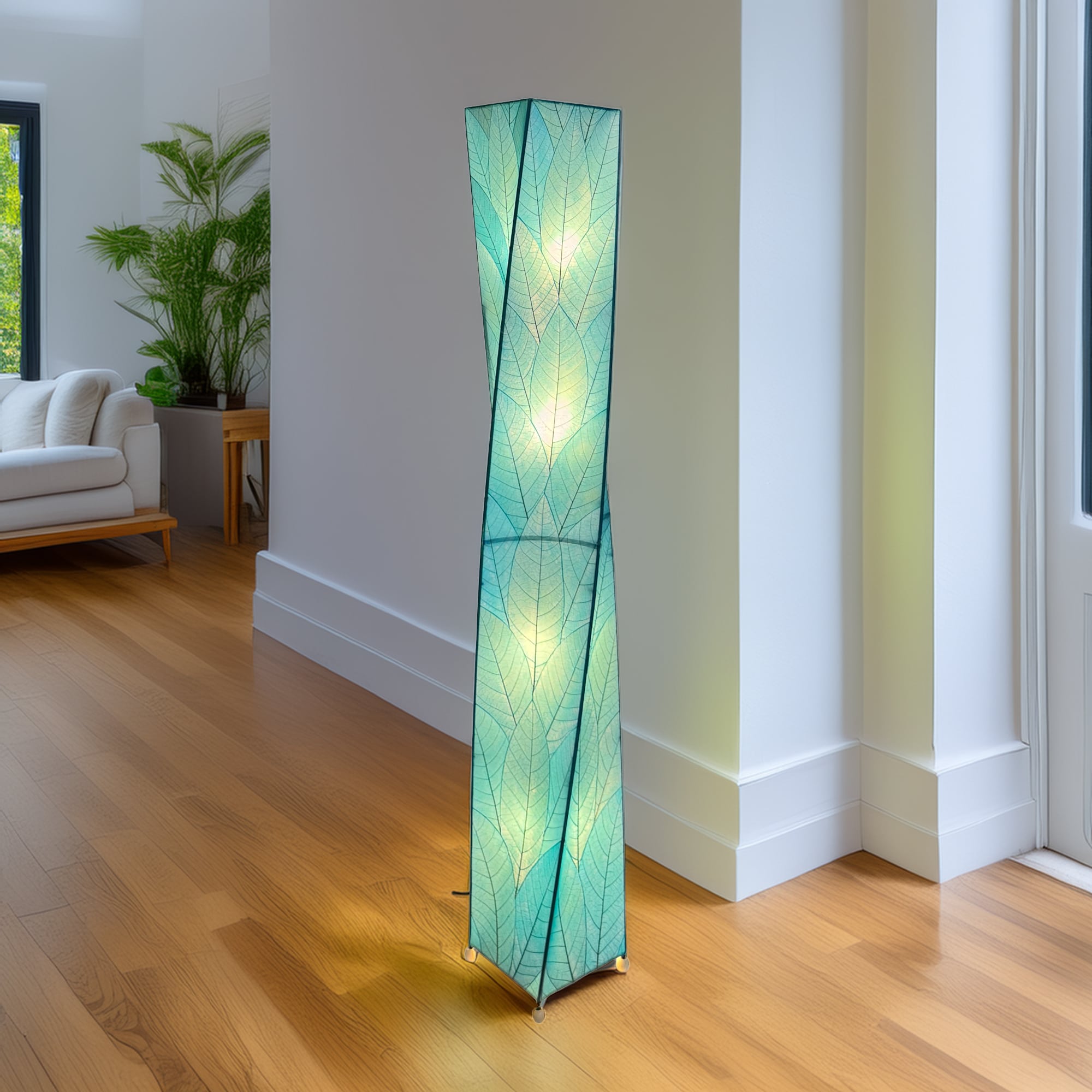 There’s a quiet drama to the Twist Giant Floor Lamp—like a sculpture mid-turn, caught in motion. Its towering form rises from the floor and gently spirals upward, drawing the eye and shifting the mood of the room. When lit, the hand-placed cocoa leaves softly glow, revealing every vein, every natural curve—each one preserved in time. It doesn’t just light a space. It creates presence.