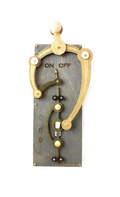 - Light switch cover is completely functional. Gear handle moves rack, turning on and off light switch