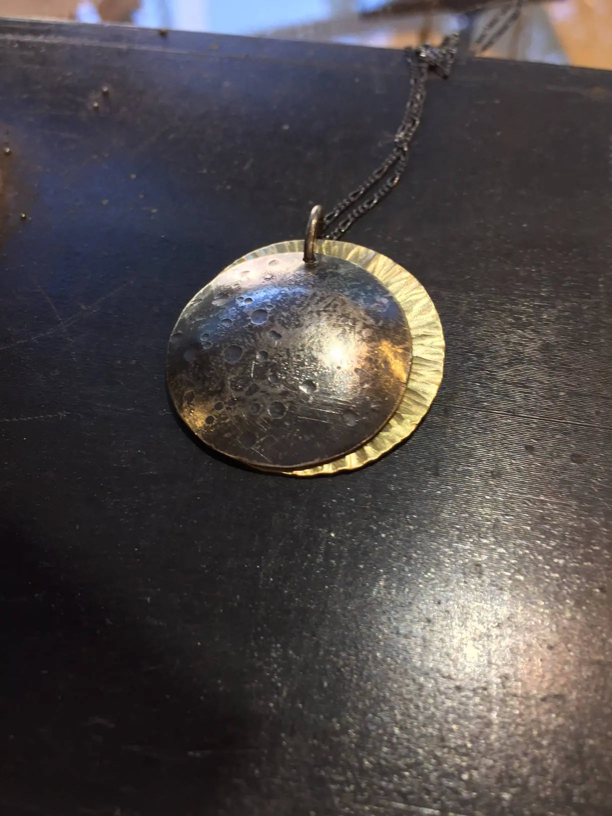 Oxidized and textured solid sterling moon eclipse a bronze textured sun