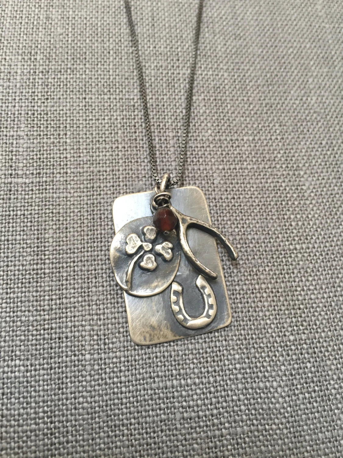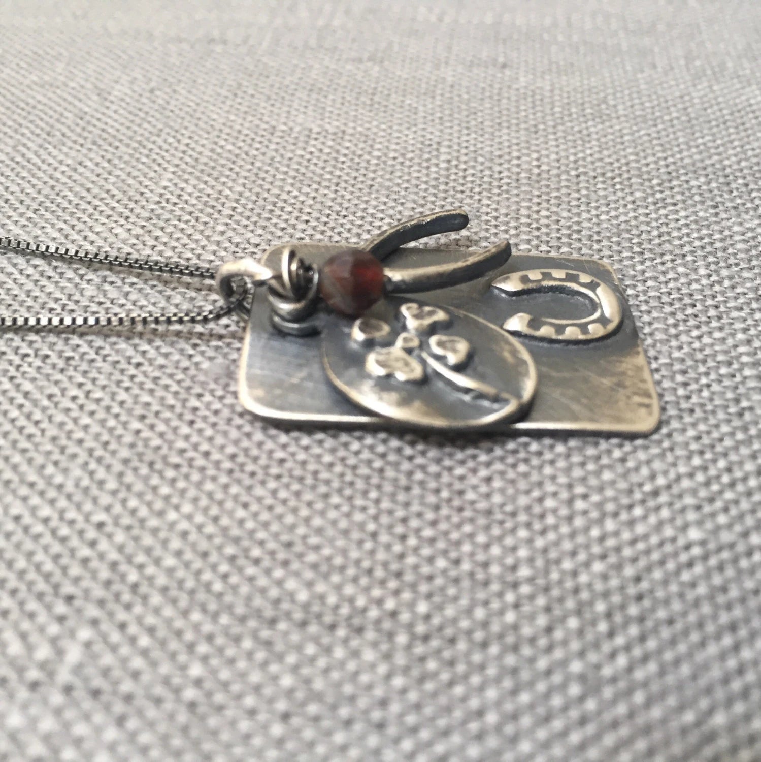 Lucky Charms Necklace Sterling Silver & Carnelian gemstone/Local