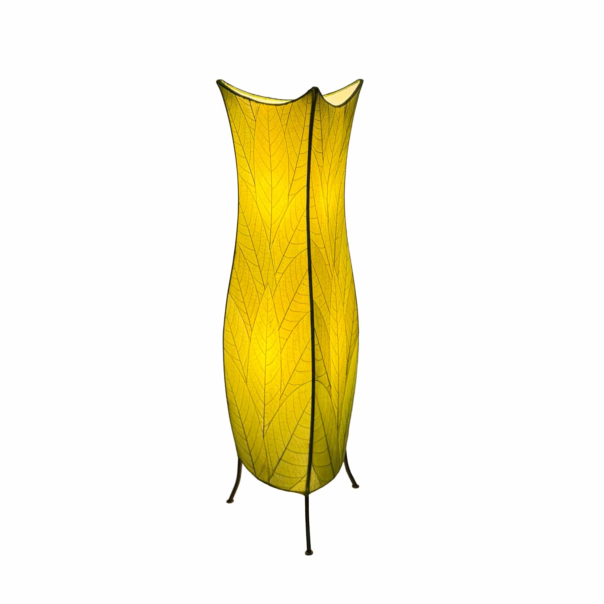 Crafted from real fossilized cocoa leaves, the shade glows softly from within, highlighting every delicate vein and natural detail. The seamless construction keeps the silhouette fluid, while the upward arch of the design creates a lifting effect—one that brightens more than just the room. It feels like a deep breath, like lightness rising. It’s the kind of piece you keep turning back to, not just for how it looks, but for how it makes you feel.